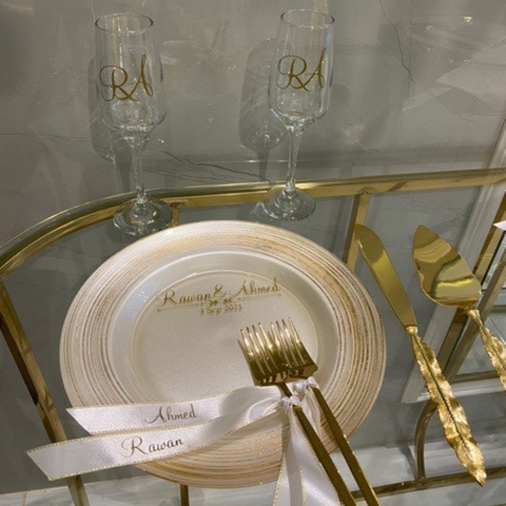 طقم ملكه صحن ابيض بحواف ذهبية 7 قطع